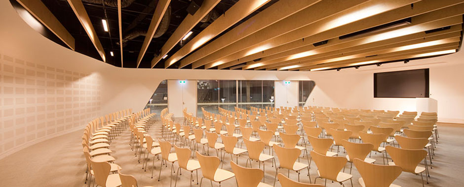 - To control the reverberation time with a large volume space (the hub) accommodating a PA/sound system with a very high acoustic performance target.