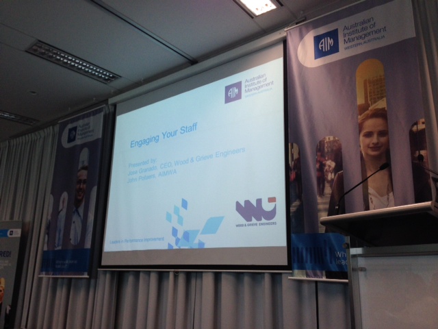 Wood & Grieve’s CEO, José Granado, led an interactive session on what it takes to truly engage your staff. The event was attended by over 120 management professionals and focused on the Wood & Grieve story.