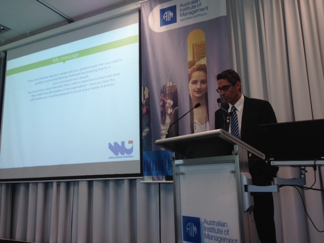 José reflected on what he thought engagement truly meant to WGE and how he continuously works on creating and maintaining a culture that nurtures and supports engagement. Wood & Grieve has, for the past 3 years, been independently accredited as a Best Employer by Aon Hewitt and José reflected on what these accreditations and their supporting data told the leadership team about the Wood & Grieve employees. His key message for the audience was: