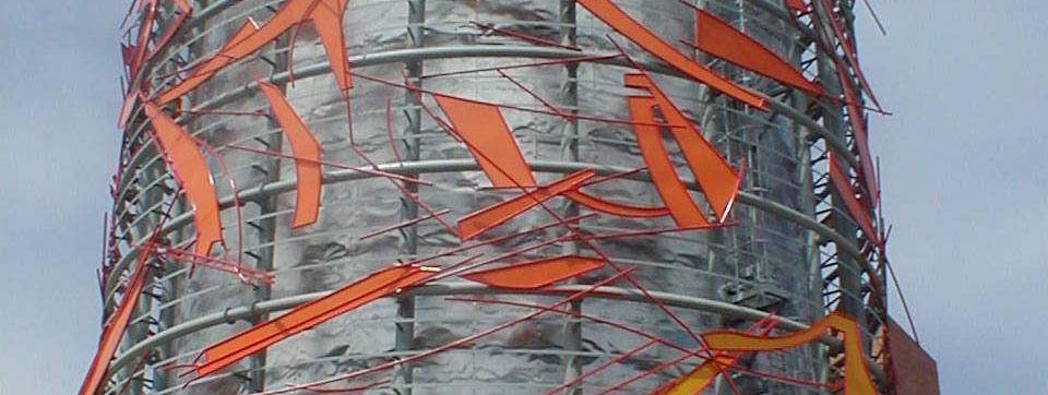 The building is a prominent feature on the campus showcasing large coloured concrete panels which incorporate intricate artistic designs.