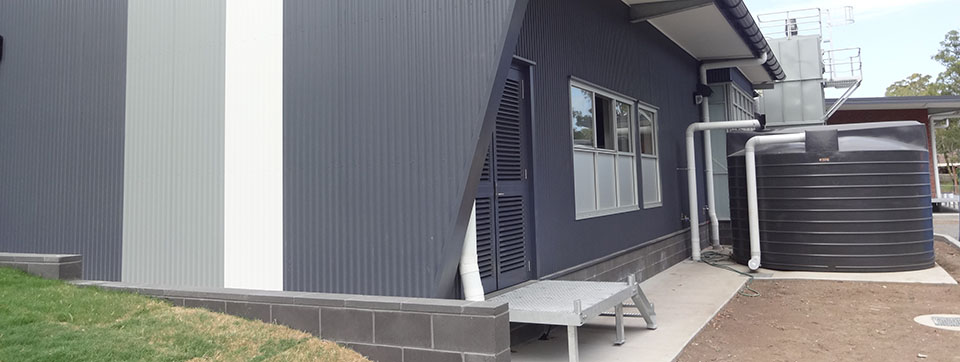 The majority of the structure is founded on pad footings constructed on the insitu material with a jointed slab on ground. A portion of the slab is supported off bored piers where the slab bridges an existing stormwater pipe which was not re-routed. This build over solution was found to be a cost effective solution to mitigate differential settlement risks without rerouting this service. The majority of the top structure is clad in metal sheeting with face block and brick walls adding to the aesthetic appeal of the building.