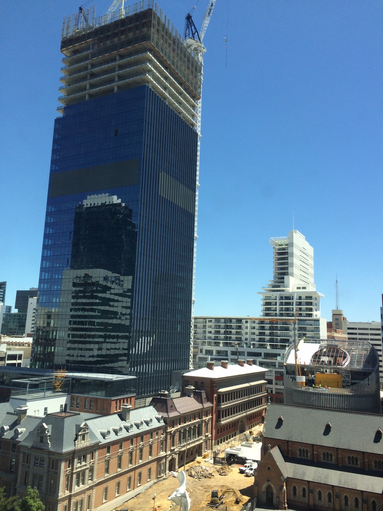 The Treasury Building, a 33-level office development in the Perth CBD, is drawing attention as it nears completion. The building is a highlight on the Perth sky-line, exemplifying the perfect mix of preserving the historic nature of the adjoining site, whilst allowing for a modern design.