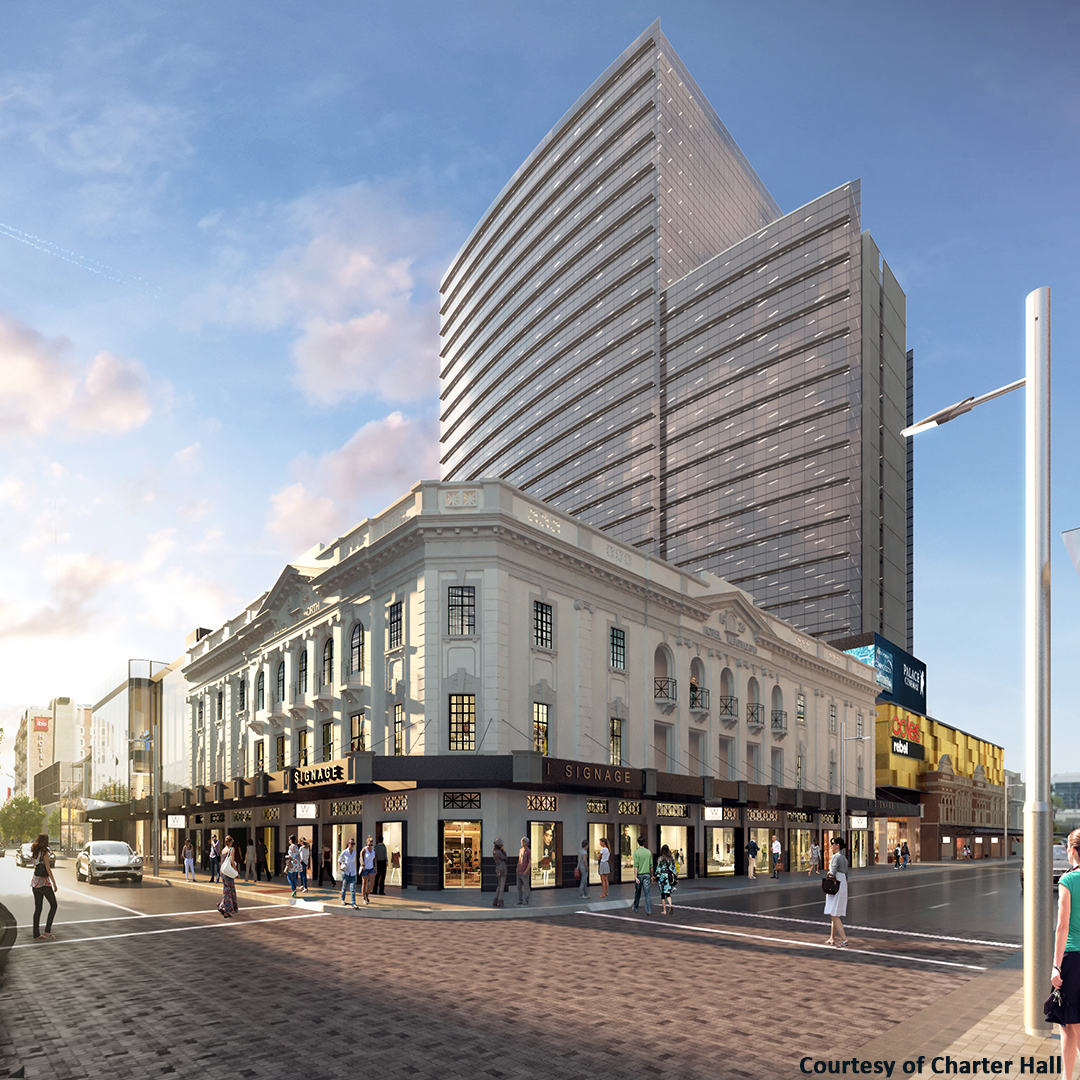 The transformation of Raine Square in Perth’s CBD will result in a seven-days-a-week entertainment, dining and retail precinct, incorporating 40 retail stores, a 12-screen cinema complex and boutique hotel. The development required the demolition and substantial refurbishment of existing structures across the precinct. The extent of the refurbishment runs below the office tower block therefore construction methodology, delivery constraints and noise issues all had to be considered to minimise disruption.