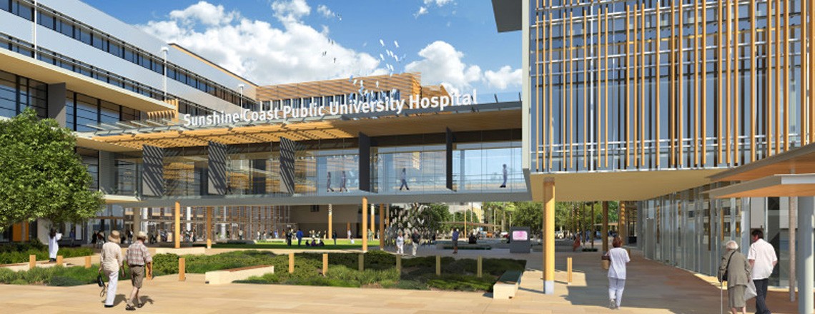 The hospital precinct incorporates the construction of an industry leading 738-bed public hospital with an emphasis on research and learning, a 250-bed private hospital, the duplication of Kawana Way and the construction of surrounding supporting infrastructure.